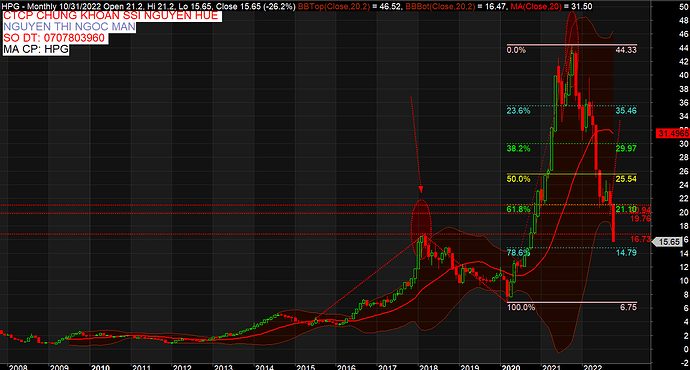 Kể từ lúc niêm yết trên sàn đến hiện tại HPG có 2 quý ghi nhận lỗ: lần đầu tiên là quý 4.2008 và ta nhận thấy giá cổ phiếu thiết lập nền và tăng trong 14 năm và lần thứ 2 là hiện tại quý 3.2022. Liệu lịch sử có lặp lại?? Lưu ý đây là cổ phiếu chu kì nên việc thiết lập nền hay giá đáy tính bằng năm là bình thường.