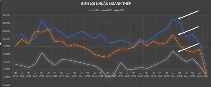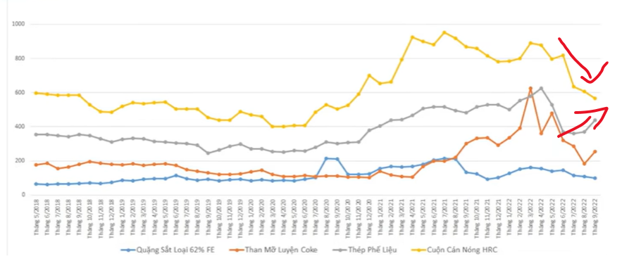 Thì hiện tại HPG đang vào giai đoạn không có gì xấu hơn vì: nhu cầu xây dựng BDS giảm khiến cho giá giảm theo trong khi đó chi phí nguyên vật liệu tăng cao làm co hẹp biên lợi nhuận đó là vấn đề!!!