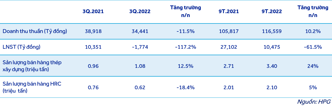 2. CẬP NHẬT NHANH BÁO CÁO KẾT QUẢ KINH DOANH HPG QUÝ 3.2022
