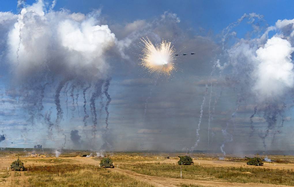 Bộ Quốc phòng Nga cho biết, giai đoạn cuối của cuộc tập trận có sự tham gia của tất cả các loại vũ khí hiện đang phục vụ trong Lực lượng Hàng không Vũ trụ Nga, máy bay không người lái tấn công, nhiều bệ phóng tên lửa, đạn dược dẫn đường chính xác, hệ thống súng cối hạng nặng TOS-1 và ISDM điều khiển từ xa. hệ thống kỹ thuật khai thác khoáng sản.
