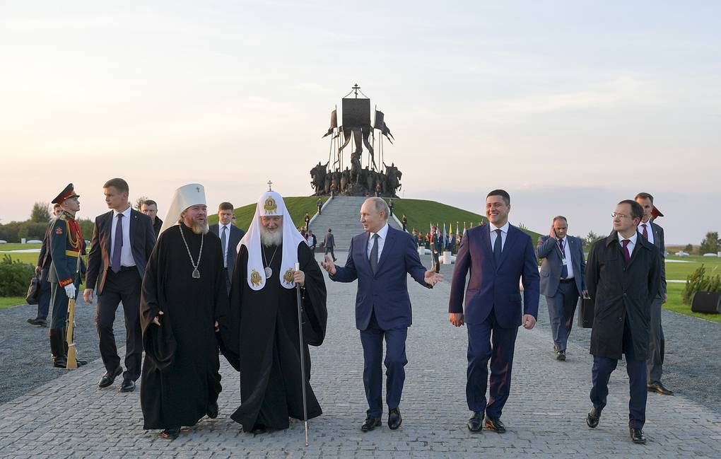 LÀNG SAMOLVA / Vùng Pskov /, ngày 12 tháng 9. / TASS /. Hôm thứ Bảy, Tổng thống Nga Vladimir Putin đã tham dự buổi lễ khánh thành tượng đài hoàng tử và thánh Alexander Nevsky thời Trung cổ của Nga ở Vùng Pskov, Tây Bắc nước Nga hôm thứ Bảy.