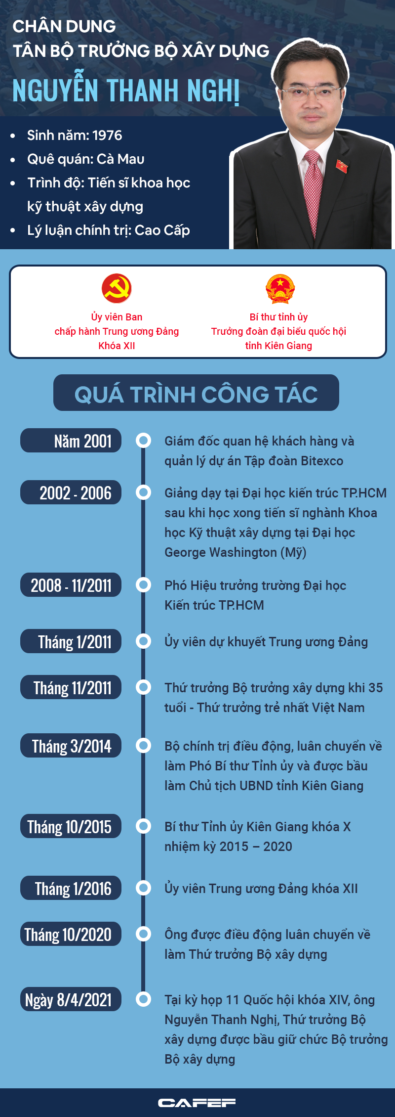 Tại kỳ họp thứ 11, Quốc hội khóa XIV, ông Nguyễn Thanh Nghị được Quốc hội phê chuẩn bổ nhiệm giữ chức Bộ trưởng Bộ Xây dựng.