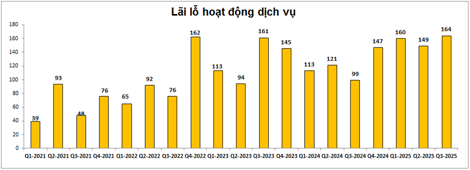 Mảng kinh doanh ngoài lãi của KLB cũng ghi nhận tăng trưởng tốt trong Q3-2025 với 2 mảng đóng góp chính là hoạt động dịch vụ và mảng kinh doanh khác (nghiệp vụ xử lý các khoản nợ xấu). (Hình 5)