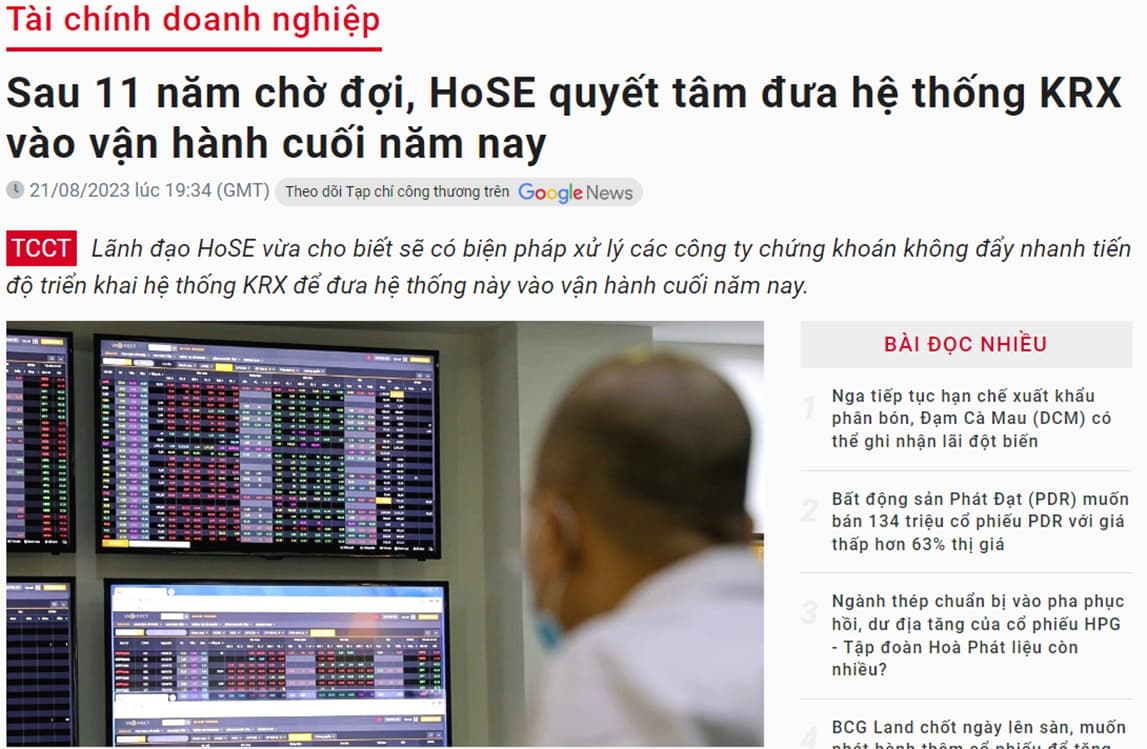 KRX là hệ thống nằm trong hợp đồng dịch vụ công nghệ thông tin với giá trị hơn 600 tỷ giữa Sở Giao dịch chứng khoán sàn HoSE và Sở Giao dịch chứng khoán Hàn Quốc từ năm 2012