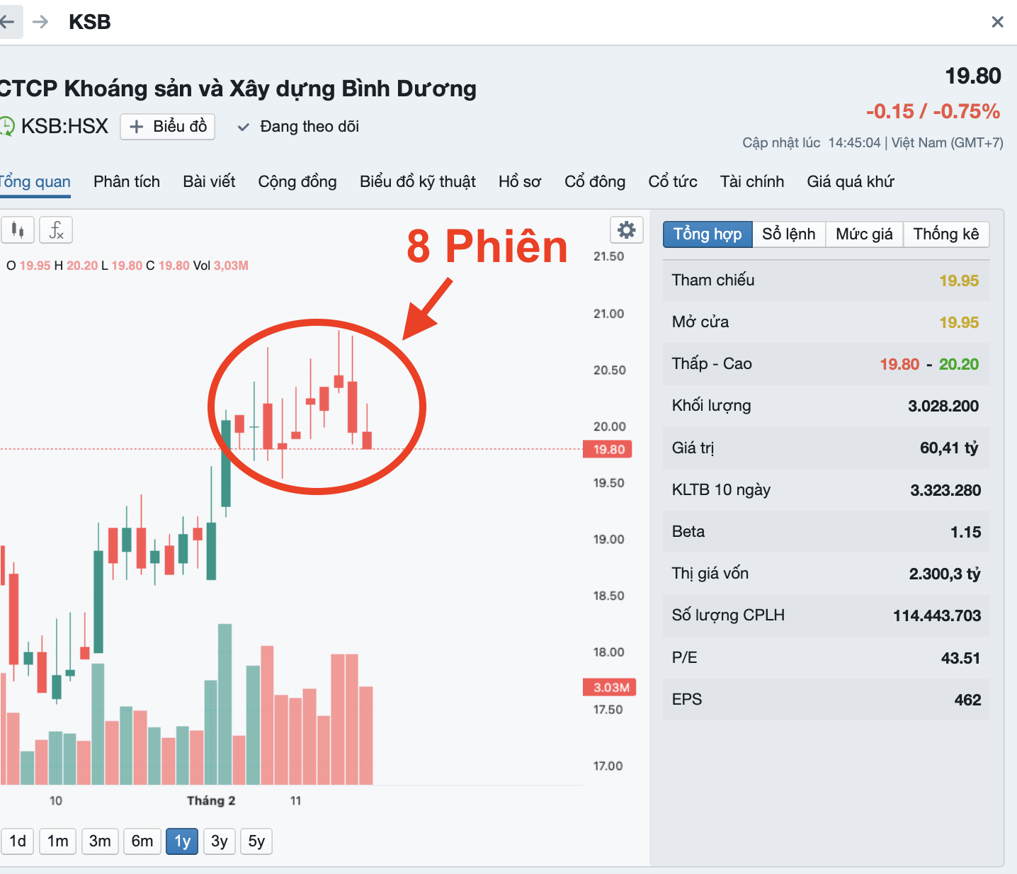 - Luận điểm phân tích: Hiện tại KSB đang có trạng thái biên độ trong vùng biên TR của Wyckoff, ở thời điểm hiện tại A.C có thể theo dõi là KSB đã có rất nhiều phiên có tín hiêu tăng tích cực ở đầu phiên những đều bị bán mạnh vào cuối phiên và xuất hiện rất nhiều phiên có cây nến xấu, kèm theo đó chủ đạo là Volume đỏ với lượng thanh khoản rất cao. Với trạng thái này trong Wyckoff – VSA chúng ta sẽ gọi là hấp thụ lực cầu, chúng ta có thể hiểu như sau. Cầu đang cố gắng nỗ lực đẩy giá lên, tuy nhiên khi đẩy lên một nhịp thì lại gặp áp lực cung hàng mạnh hơn bán xuống, cung- cầu tranh chấp qua lại tại vùng này rất mạnh nên tạo ra những phiên giảm điểm và đi ngang với thanh khoản lớn. Vậy nên để tăng giá mạnh ở giai đoạn hiện tại của KSB thì sự kiến sẽ có một nhịp giảm điểm lại về vùng giá 18, hoặc sâu hơn có thể về đến 17.5 ở trong thời gian tới. A.C đang có ý định mua thì nên cẩn trọng một chút.