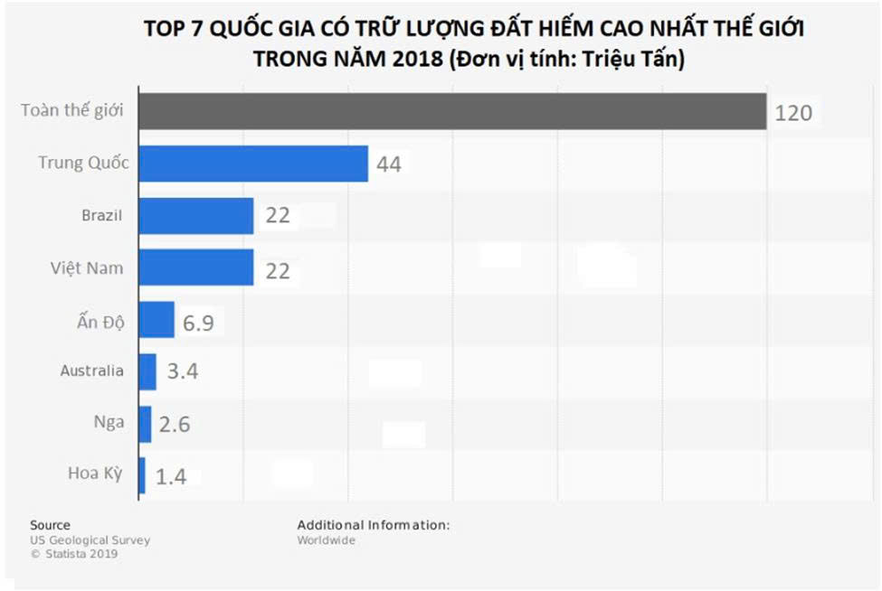 VN là quốc gia có trữ lượng đất hiếm xếp thứ 2 TG, sau Trung Quốc với trữ lượng 44 triệu tấn.