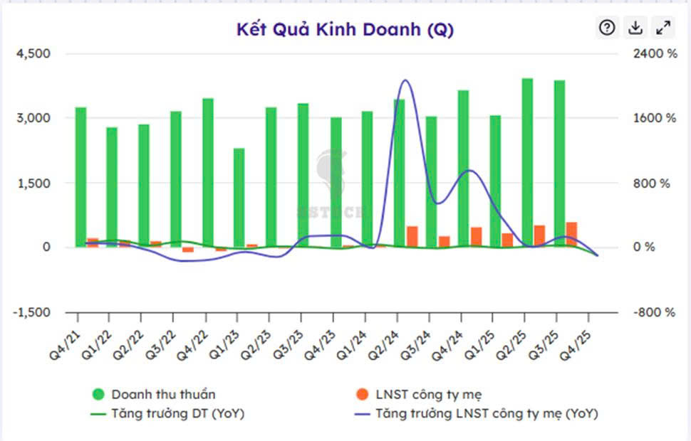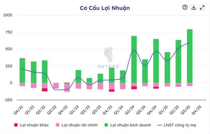 Tăng trưởng LNST của công ty mẹ ở Qúy III vừa rồi cũng đạt mức 132%
