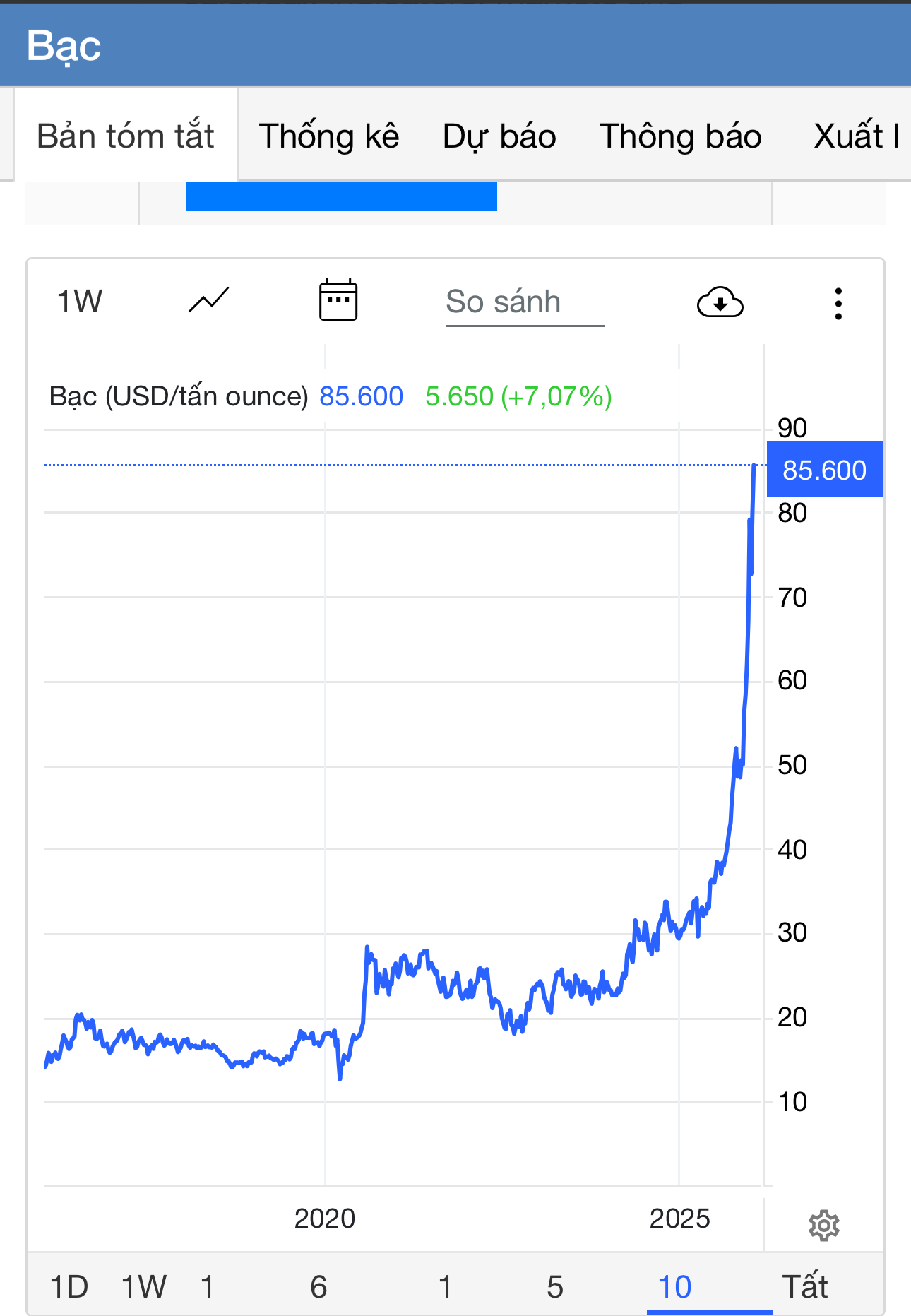 Bạc tăng 400% từ 18 lên 85