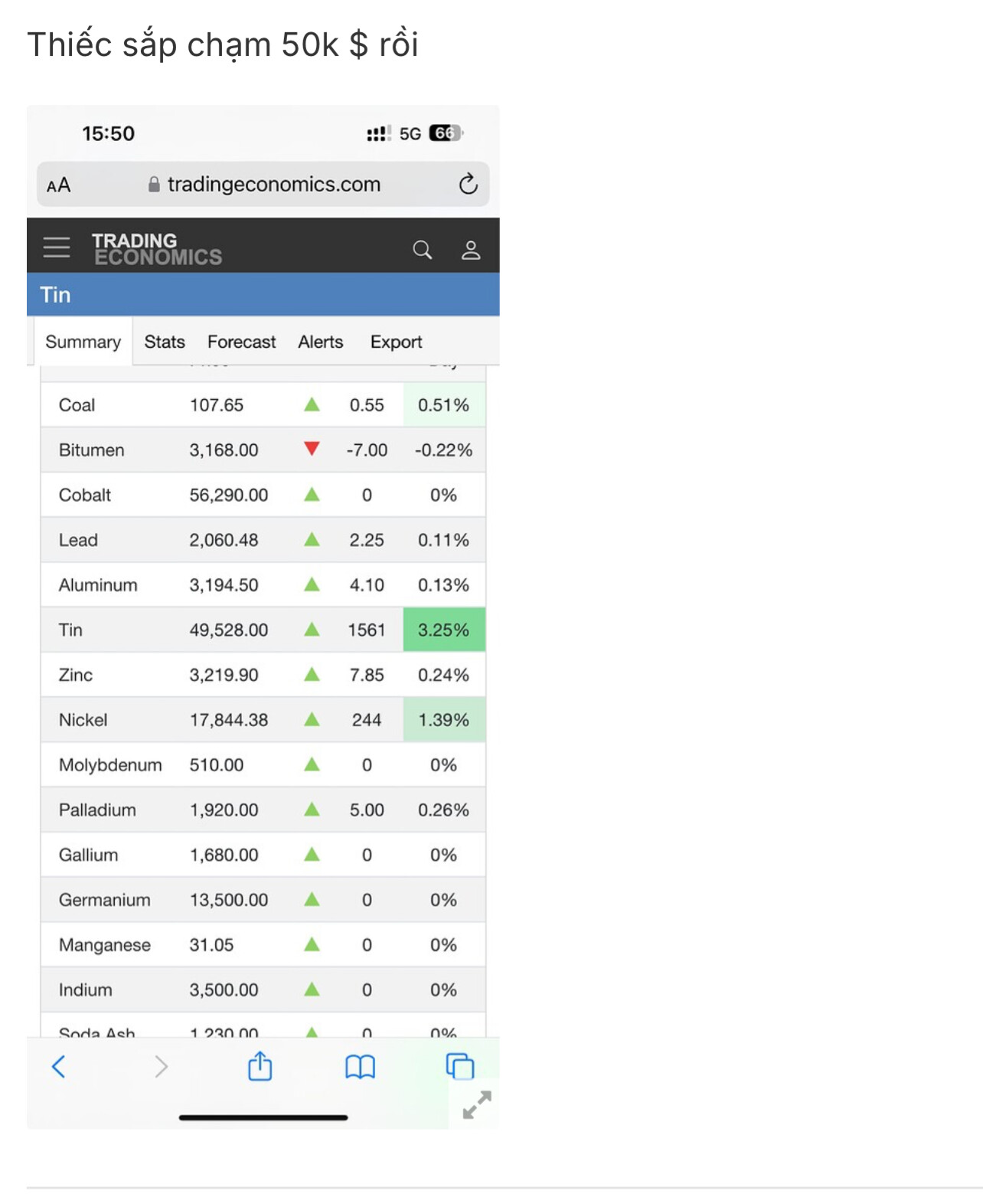 Giá thiếc vượt đỉnh thời đại đêm qua rồi. KCB.