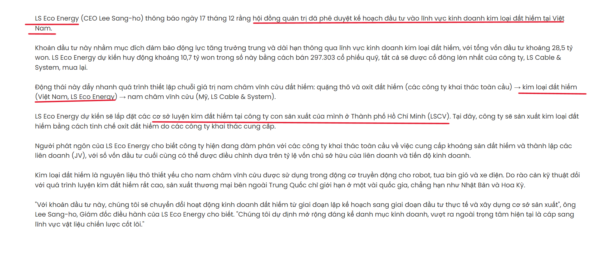 ___ Cái quan trọng LS Eco Energy mở nhà máy luyện kim đất hiếm tại TPHCM .