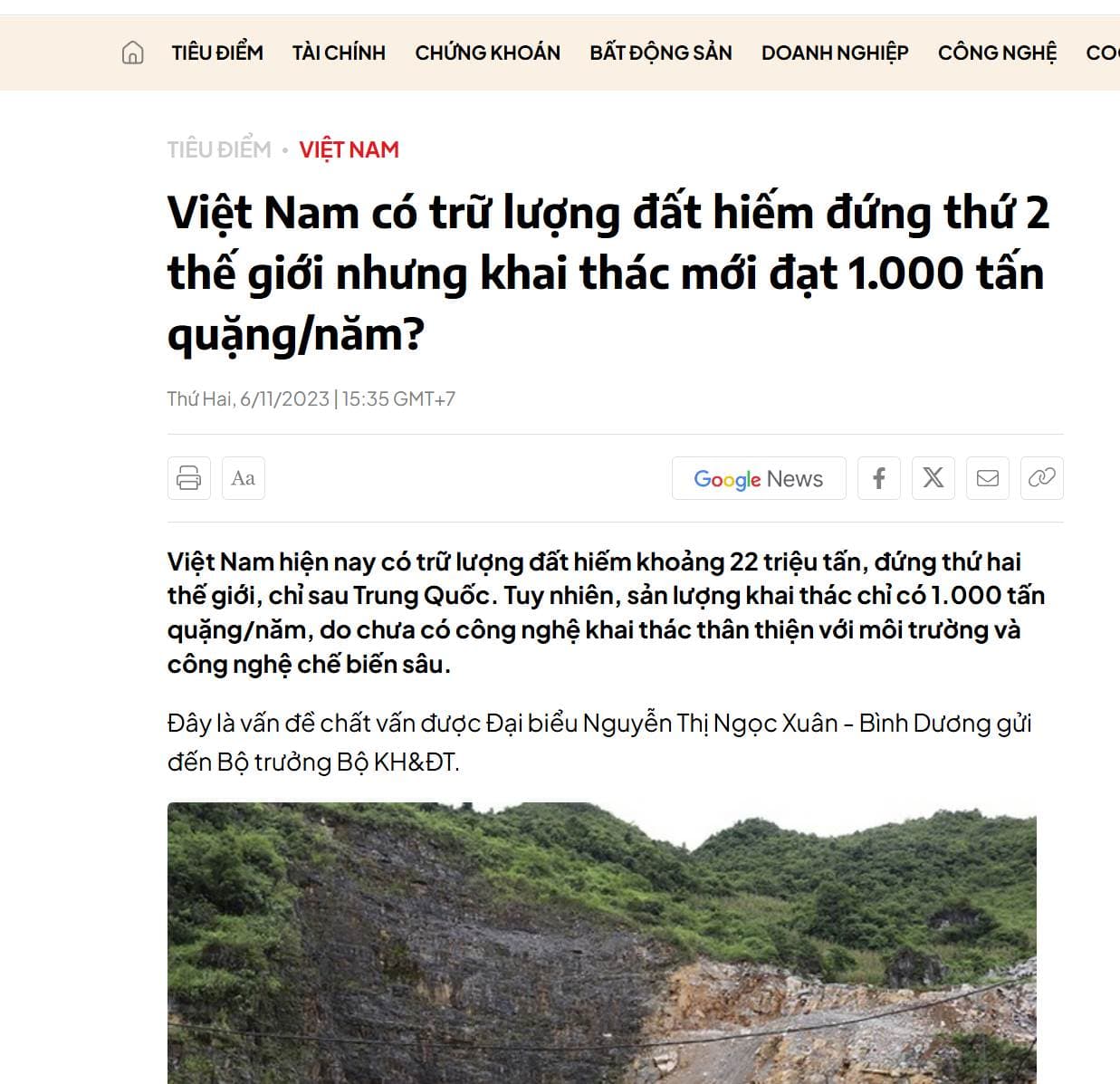 Việt nam có 2 mỏ Đất hiếm được TTg phê duyệt khai thác công nghiệp .