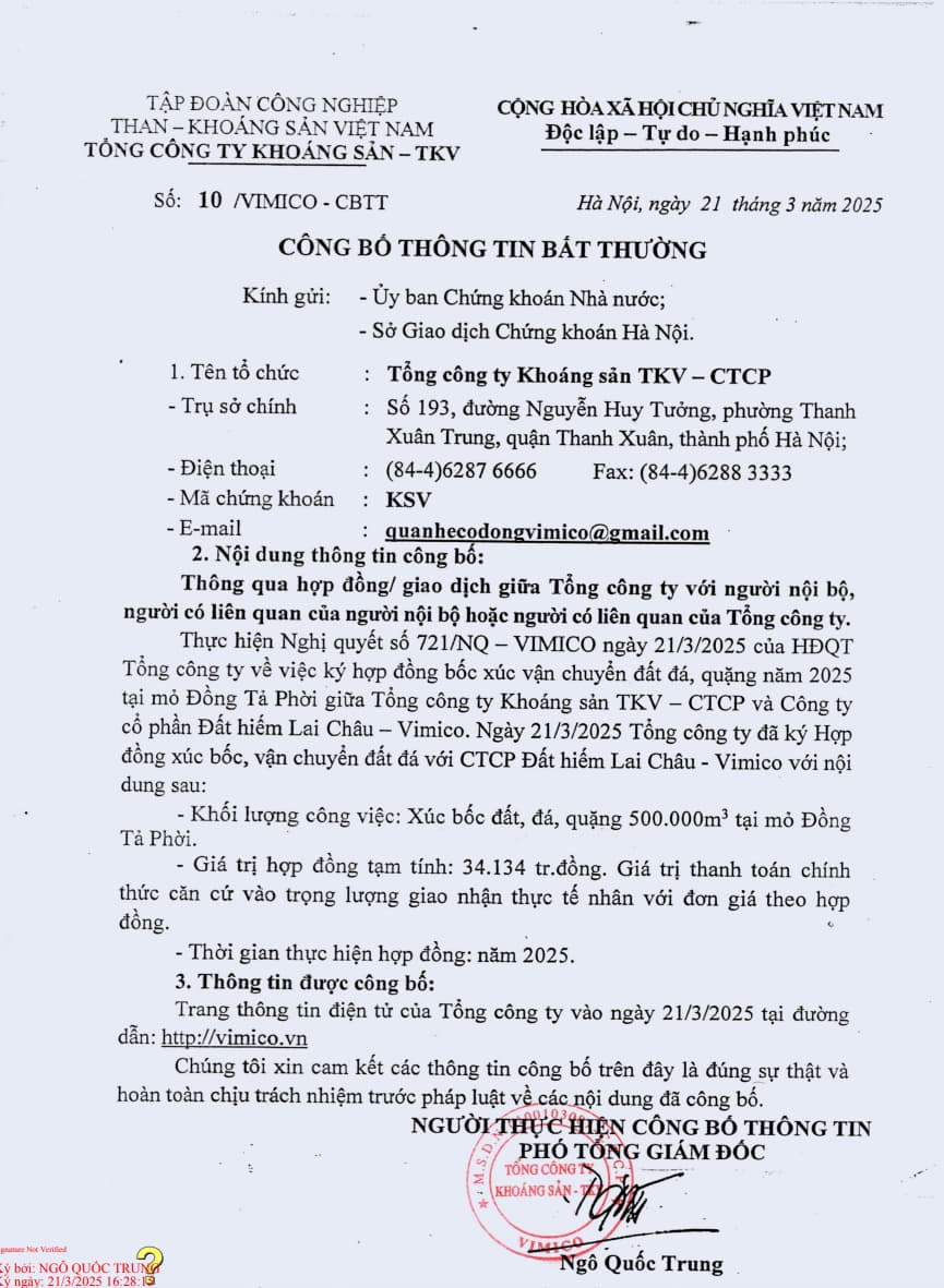 Sau 3 lần TQ muốn hợp tác nhưng TKV từ chối.