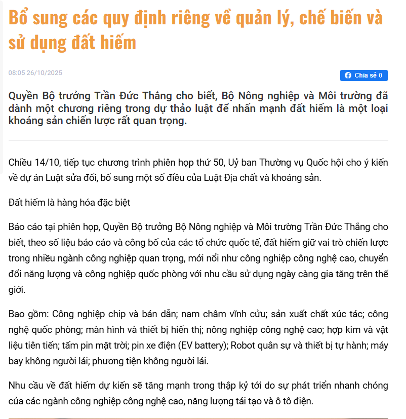 Không thấy nhắc gì tới đất hiếm bác nhỉ