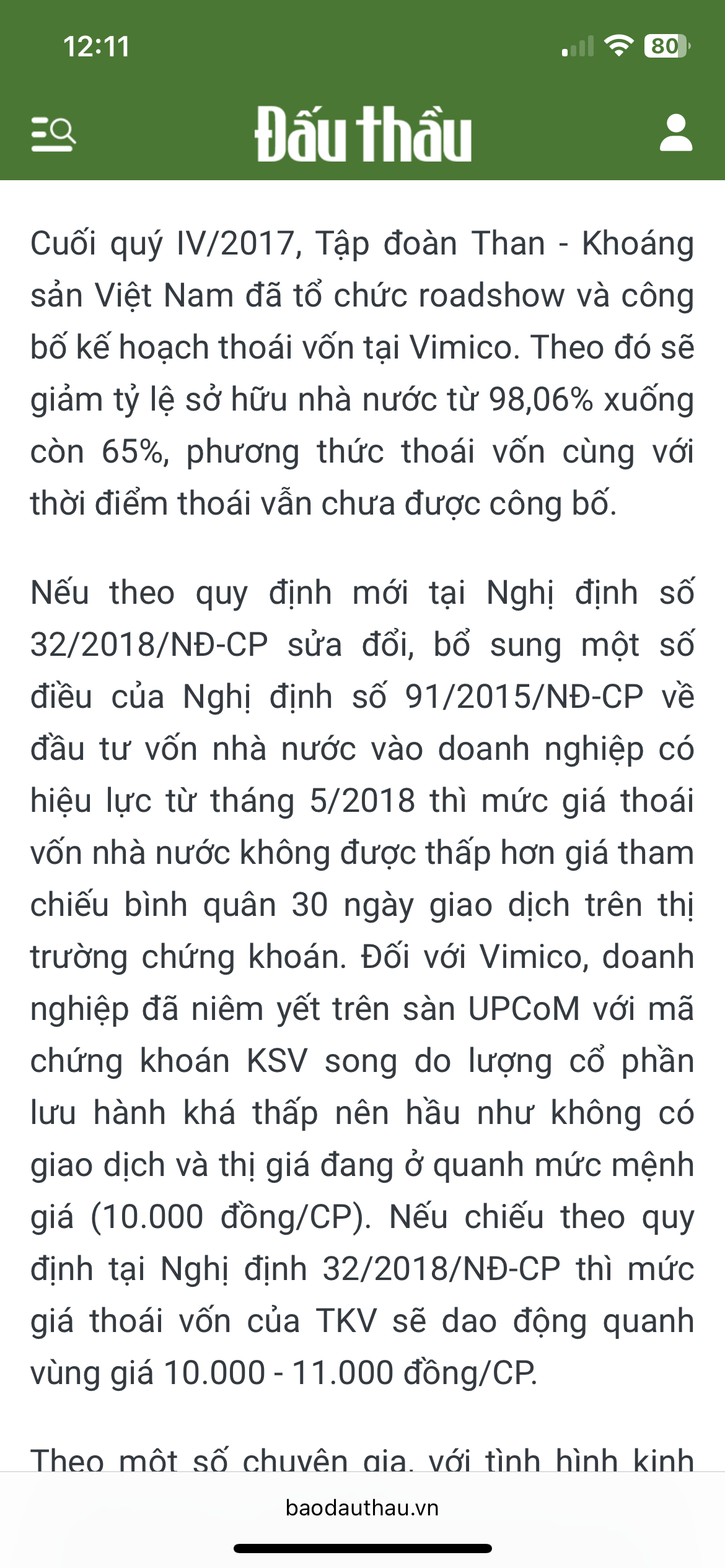 Nhà nước đang đẩy mạnh cổ phần hoá và đưa các doanh nghiệp niêm yết trên sàn tập đoàn than khoáng sản 1017 cũng có chủ trương thoái vốn KSV xuống còn 65% nhưng chưa thành công vì thế chắc chắn không huỷ niêm yết được chờ thoái vốn