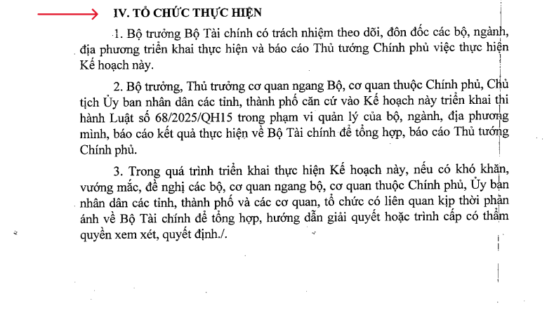 TTg chỉ đạo , Bộ tài chính chủ trì triển khai .