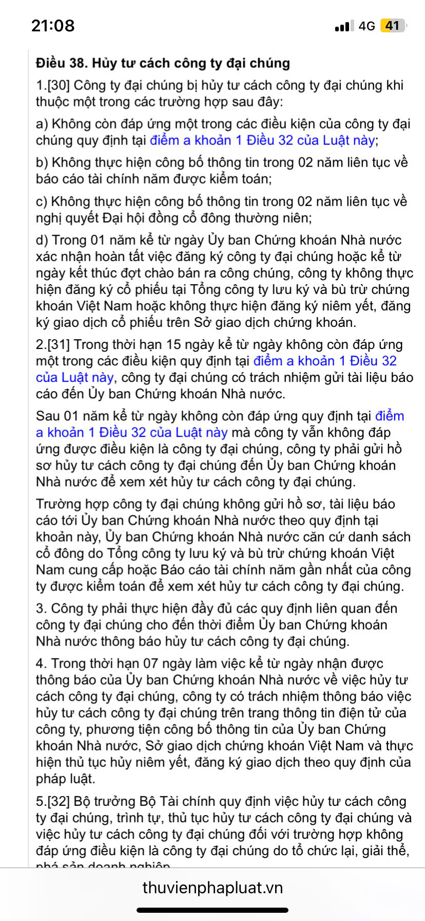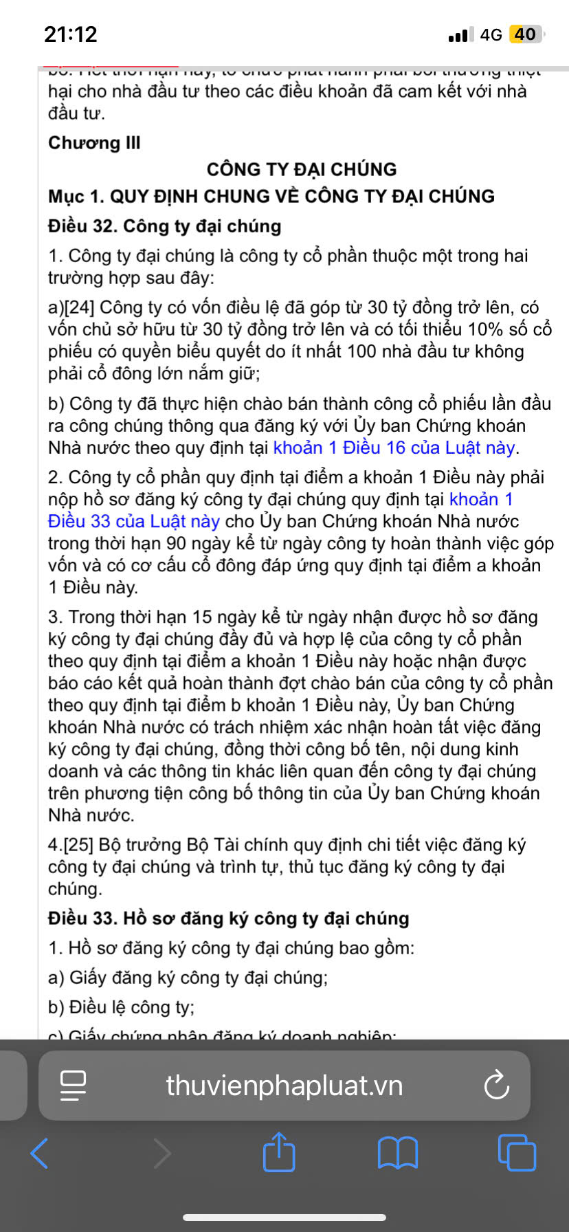 Trong thời hạn 15 ngày kể từ ngày không còn đáp ứng một trong các điều kiện quy định tại điểm a khoản 1 Điều 32 của Luật này, công ty đại chúng có trách nhiệm gửi tài liệu báo cáo đến Ủy ban Chứng khoán Nhà nước.
