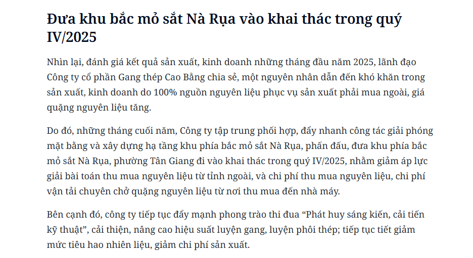 Trong bối cảnh đó, việc tiếp cận một nguồn quặng nội địa quy mô lớn được xem là yếu tố có thể làm thay đổi căn bản bài toán cạnh tranh của ngành thép trong dài hạn.