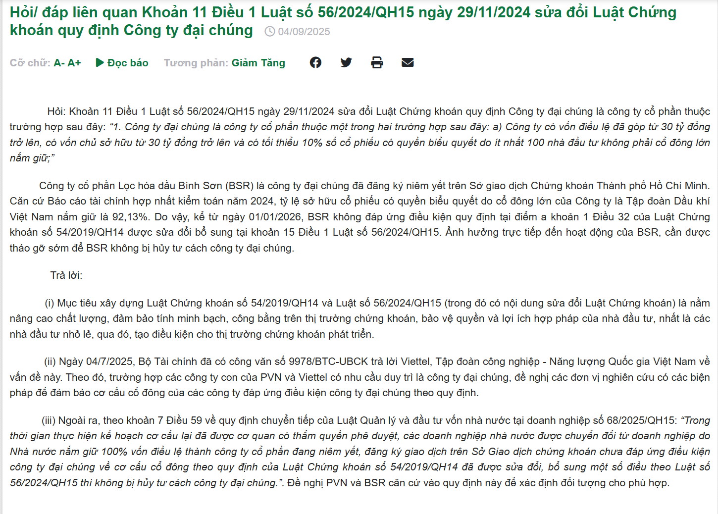 tại mục số 7 Điều 59 UBCK NN có trả lời cho Viettel , PVN ( bsr ) . Dựa vào Luật số 68 , các công ty tiếp tục làm công ty đại chúng .
