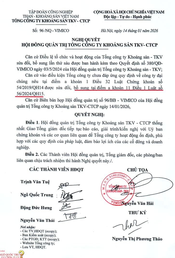 III / Ngày 14/1/ 2026 , KSV có thông báo tờ A4 về " Công ty đại chúng "