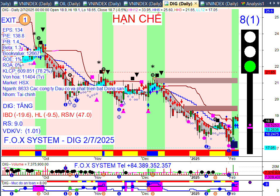 Phân tích cổ phiếu DIG hôm nay theo F.O.X SYSTEM (Ngày 2/5/2025)