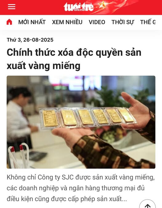 Xóa độc quyền vàng miếng thì pha kéo vừa rồi upbo SJC khá căng. Giá vàng nhẫn 120 mà vàng miếng 126. Bỏ độc quyền vàng miếng thì SJC cũng chỉ là cái tên, giá SJC sẽ thu hẹp chenh lệch. Quan điểm nhất quán của tôi là vàng nhà nước chỉ quản về tiêu chuẩn chất lượng và khối lượng. Còn thương hiệu thì không quan trọng. Vì khi mở sàn vàng buộc phải tiêu chuẩn hóa sản phẩm trên sàn