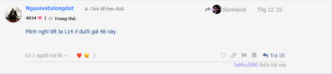haha quan trọng là L14 có giảm mạnh hay không và thời điểm đó có rủi ro khi mua không sao bạn không nói?