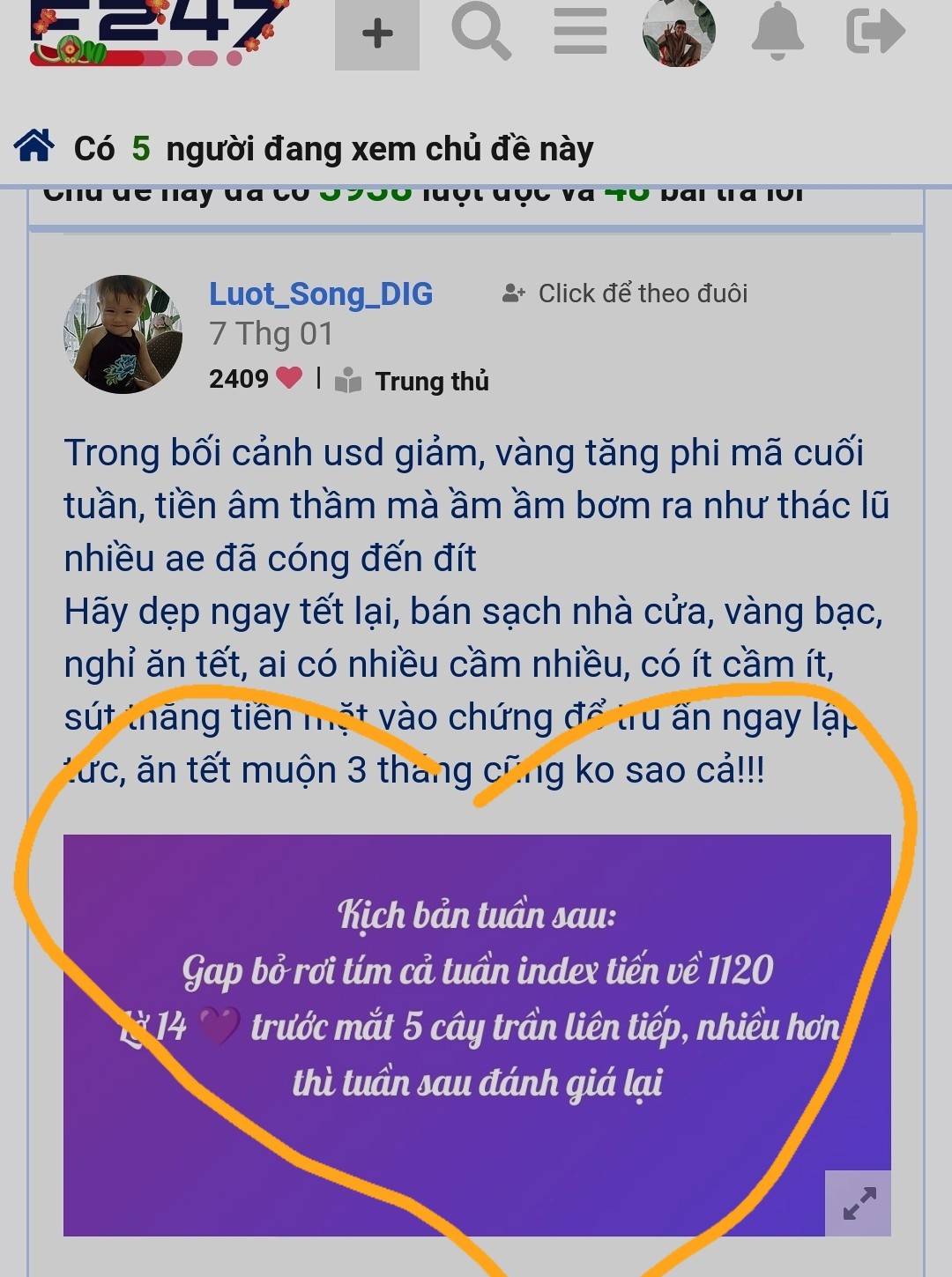 ngày 7 tháng 1 bạn này mới dự L14 tuần sau đó tăng 5 cây trần xong tuần sau đó nó từ 54 về 49 mà nay lại vào gáy với dự tiếp à kkkk