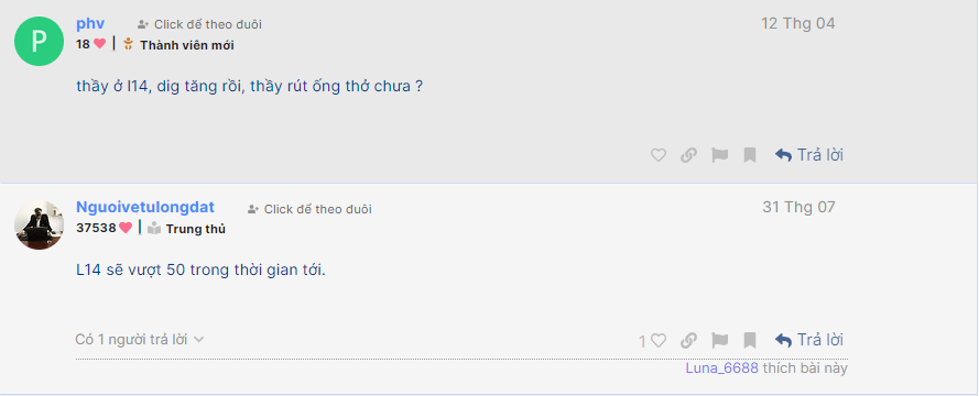 Lặn 4 tháng ngoi lên hô L14 vượt 50 đu đúng đỉnh hàng về lại cutloss , chán lắm lươn lòng đất :)))))