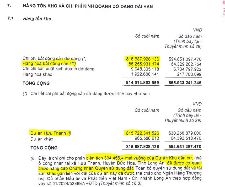 Hiện tại, dự án Hựu Thạnh đã được nhận quyết định giao đất và hoàn thành nộp tiền sử dụng đất cho giai đoạn 1 là 33,44 ha. Do những thay đổi về điều chỉnh tiến độ dự án, BVSC cho rằng dự án này sẽ được đưa vào kinh doanh trong 2026 và bắt đầu đóng góp doanh thu từ 2027, với tổng doanh thu ước đạt 3.325 tỷ đồng và lãi ròng 1.247 tỷ đồng.