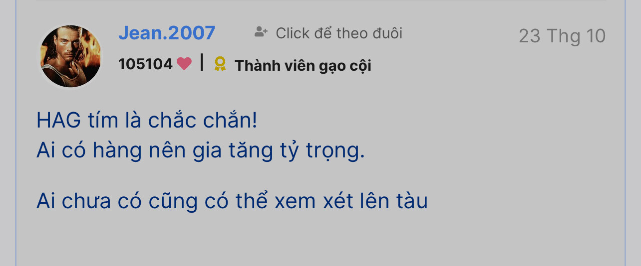 HAG có lẽ sẽ phải tích luỹ lại vùng 11-12 trước khi chinh phục mức giá 14:l.