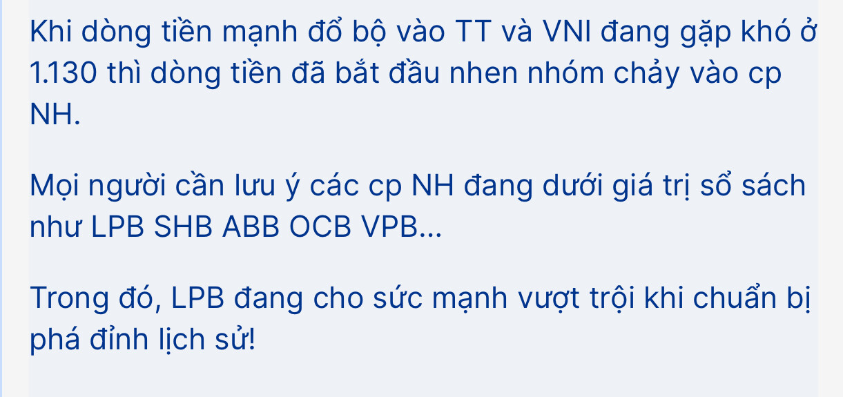 Mọi người cần lưu ý các cp NH đang dưới giá trị sổ sách như LPB SHB ABB OCB VPB…