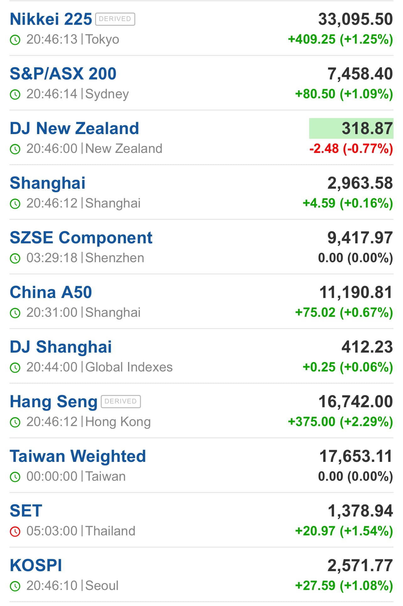 TT châu Á sáng nay đều hầu hết tăng hơn 1%