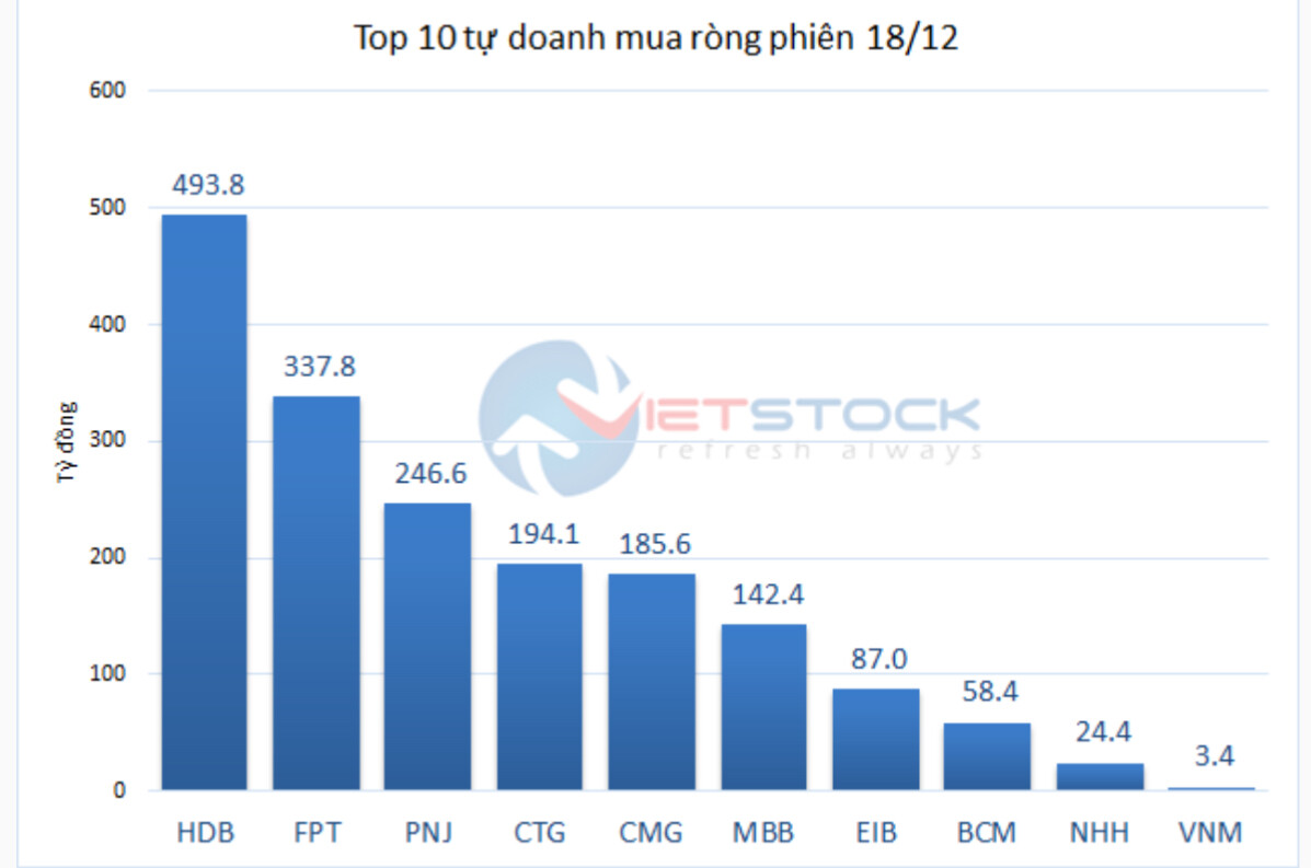 Tự doanh phiên hôm nay mua ròng đột biến lên đến gần 1.800 tỷ. Đây là phiên mua ròng mạnh nhất kể từ đầu năm của khối Tự doanh.