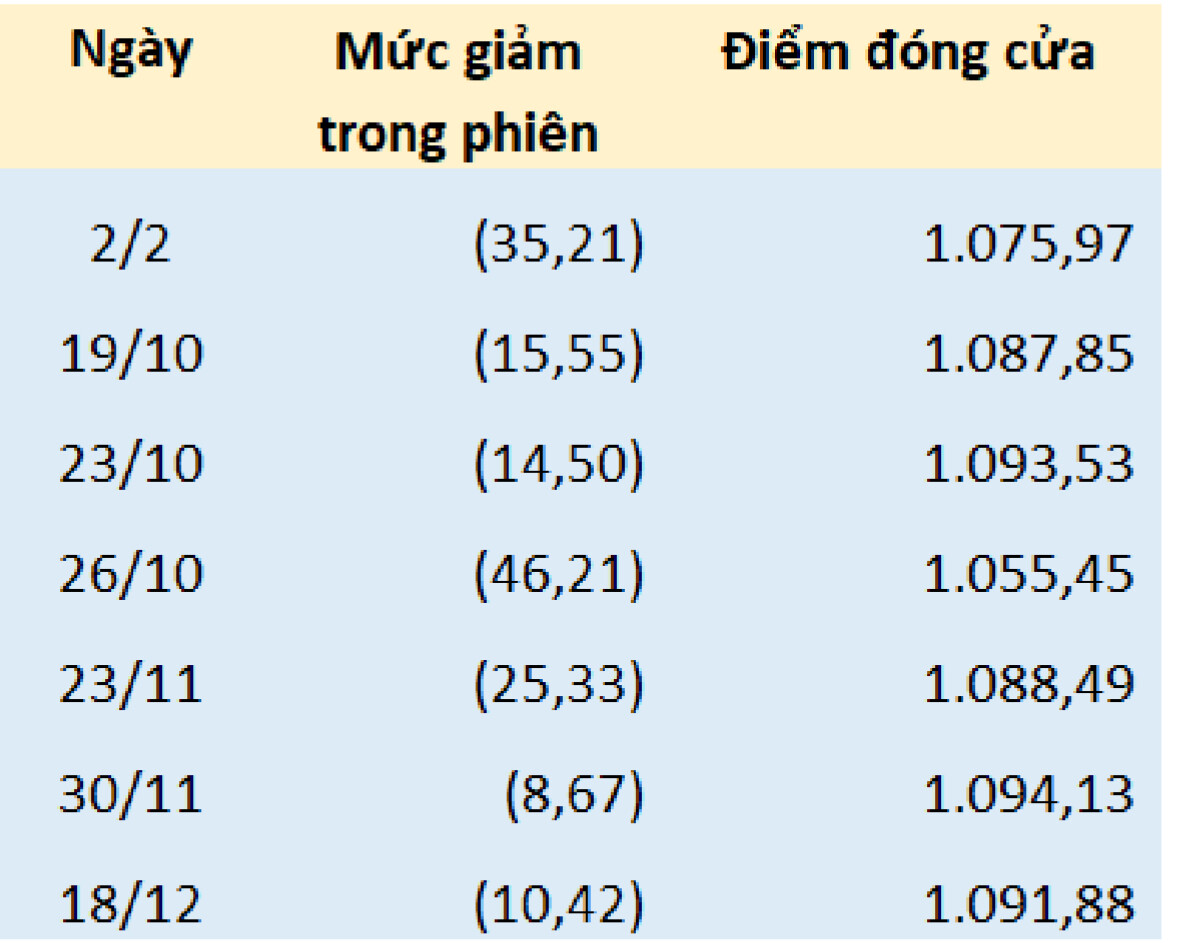 VNI đã có 7 lần thủng mốc 1.100 trong năm nay.
