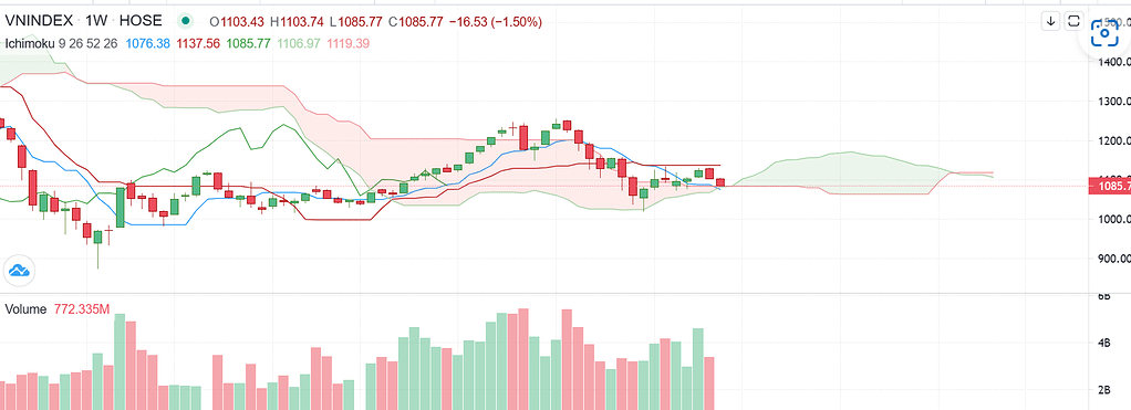 1085 - vẫn cái hình này làm chuẩn. khả năng phải chạm 1083 +/-3 thì sẽ rút chân. tuần này là tuần xác định xu hướng.