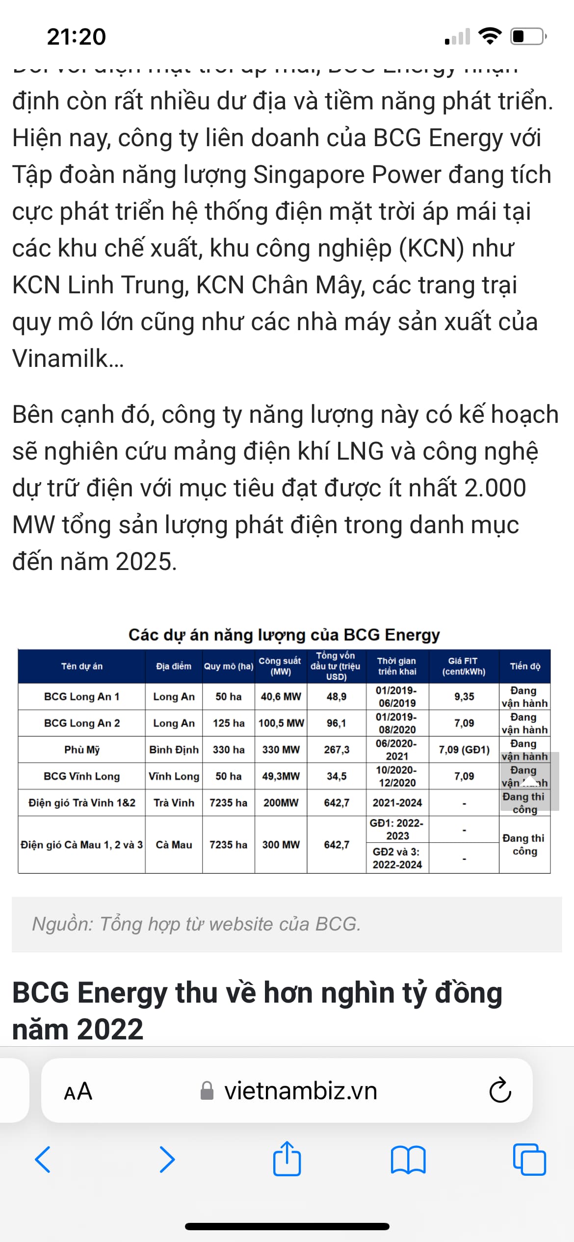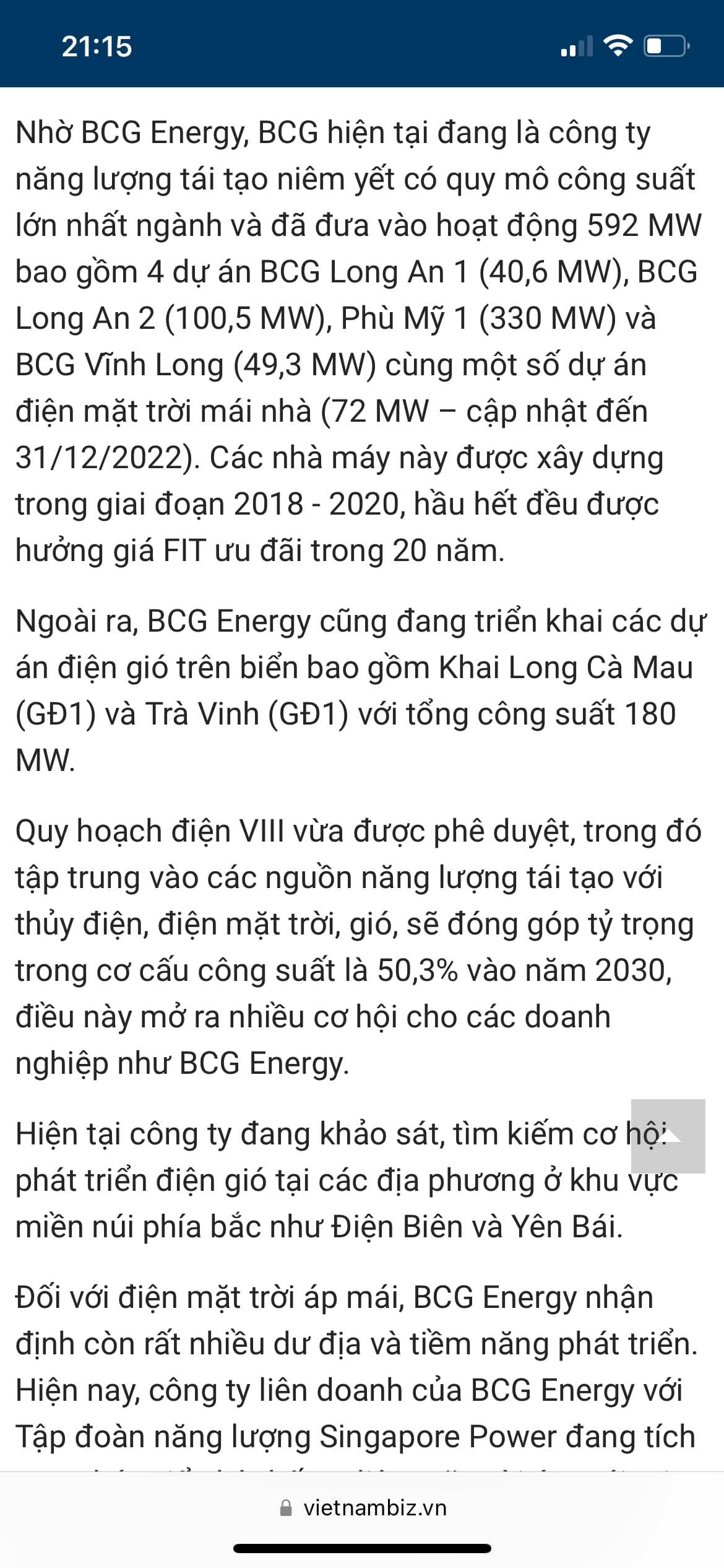 BCG sở hữu 82% BCG Energy - 1 cty đã có kế hoạch IPO Quốc tế giai đoạn 2024-2025. BCG Energy đã đang vận hành các nhà máy điện tái tạo tổng công suất khoảng 600MW, và đang thi công hơn 400 MW nữa các nhà máy điện Trà Vinh, Cà mau với kế hoạch COD trong 2024-2025. Kệ ae chim chuột, còn BCG vẫn kiểu gái quê có đường nét hoa hậu, chẳng qua em chưa đi thi thố mà thôi.