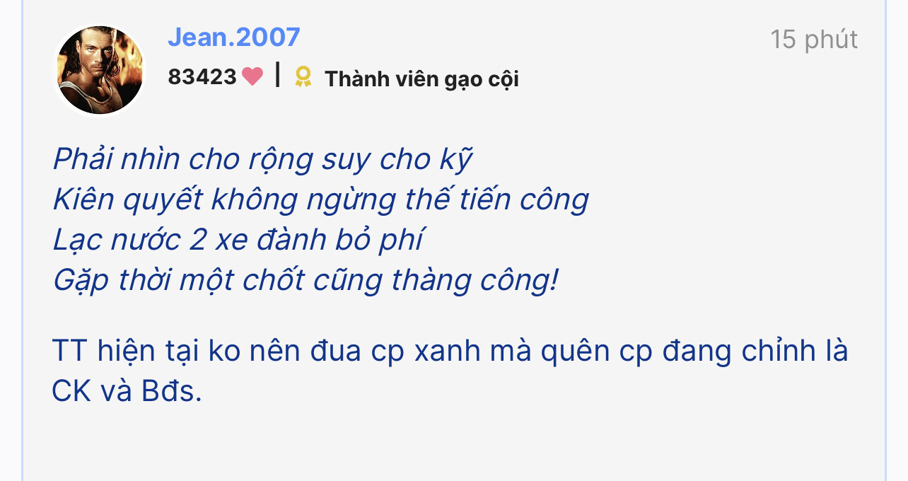 phải thiên biến vạn hóa thôi bác a… khó đánh thì mua ít… dễ đánh thì full magin… còn khó quá thì… cắt lỗ đi chơi. theo em nhận tháy thì tt này đang hóng chờ đọi đáy 2… cơ mà tạo lập với lái bảo ko nhé ![]()