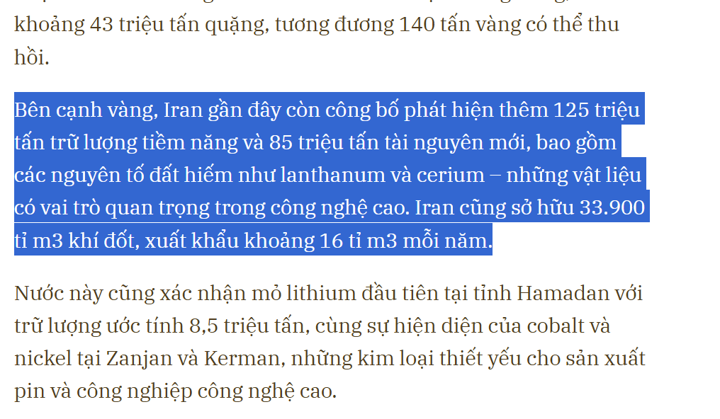 Mỹ đánh Iran thì không đơn giản chỉ vì dầu mỏ (vì Mỹ đã khống chế Venezuala rôi), mà là vì khoáng sản khác. đây mới là mục tiêu thật sự của Mỹ.