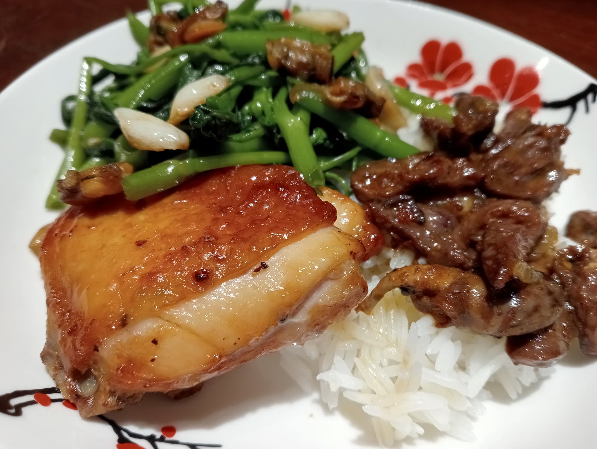 Đây là bữa tối hôm nay của em, coi vậy chứ cũng không healthy lắm đâu, toàn đồ chiên
