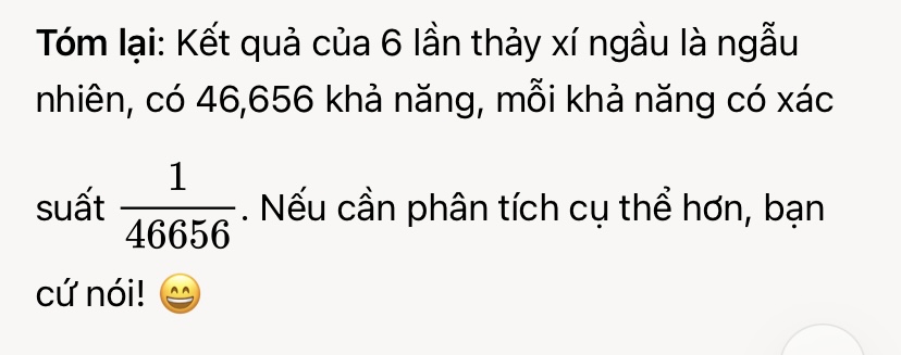 Vậy chẳng lẽ xác suất 1/6 là sai sao?