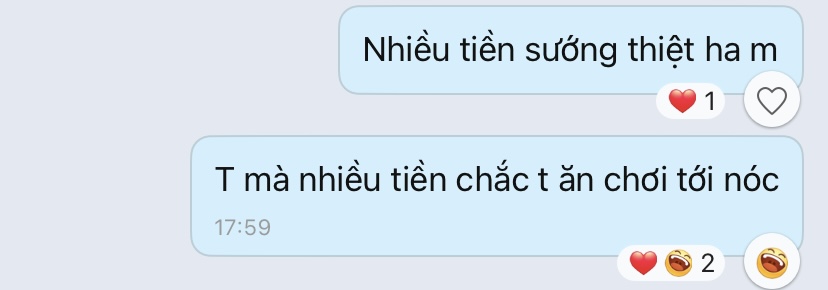 Ờ mà vừa vừa thôi chớ tiền nhiều quá em cũng sợ chính em ![]()