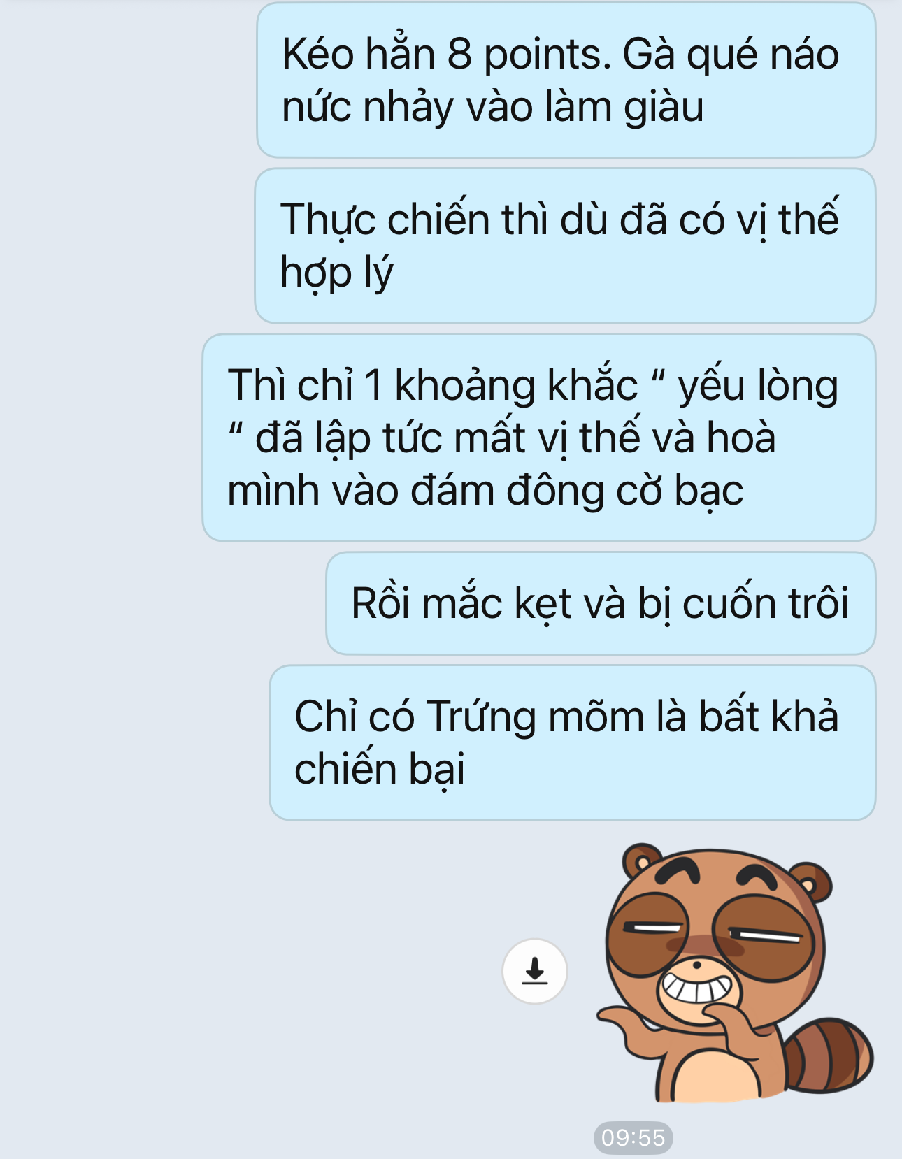 Thực chiến trừ khj đệ có Pp rõ ràng và kỷ luật thép. Nếu ko thì chỉ 1 con sóng dập dềnh đã có thể biến đệ thành … Trứng m Õm .
