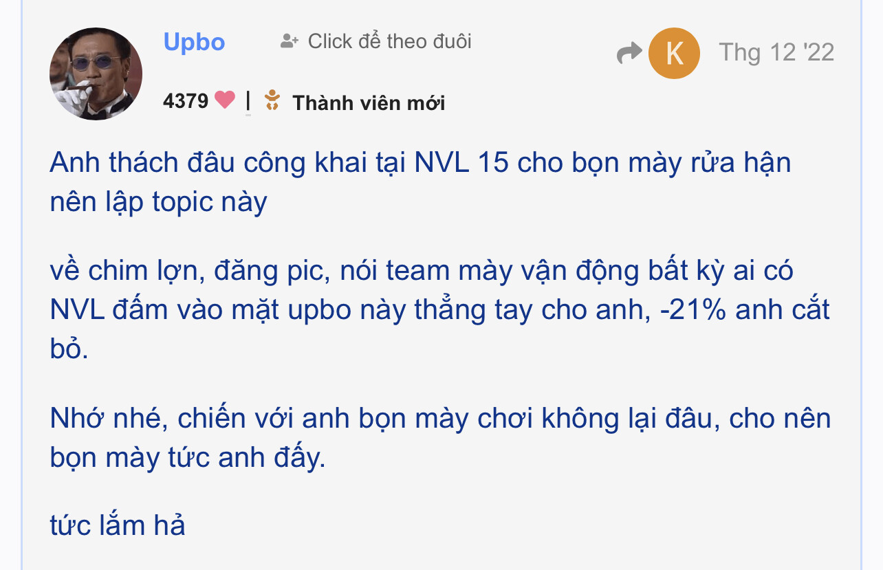 Bị đạp sml trốn cmnr. Thằng bày chỉ tt xanh mới lên khoa môi múa mép nhận công