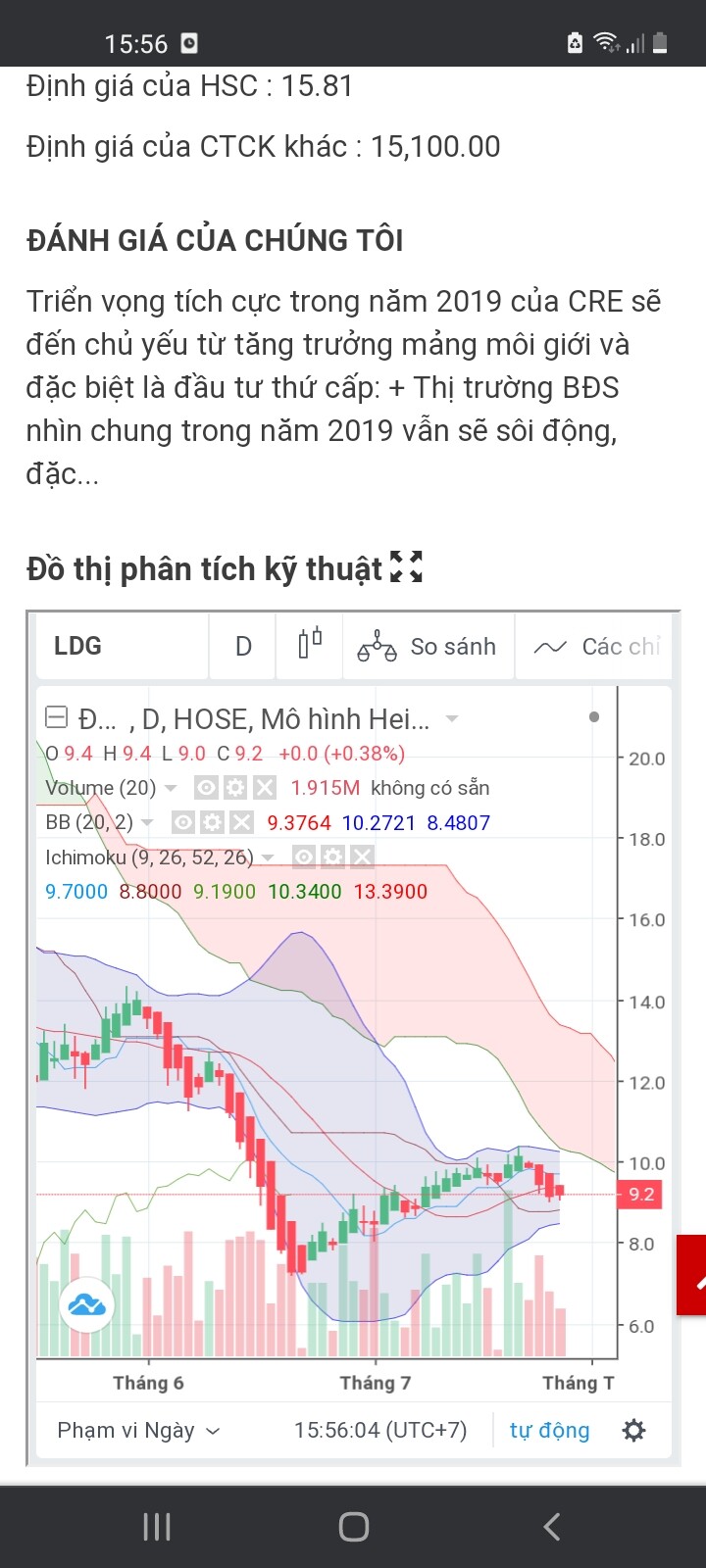 Bolinger ngày đây để cho ai muốn tham khảo thì tham khảo. Bolinger bod hẹp. Hướng lên. Chuẩn bị chui vào mây. Ichimoku đỡ giá cho ldg tại giá 9. Nên 9 khả năng cao là đáy vòng này.