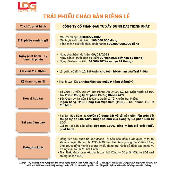 Có tin ldg sky được ngân hàng định giá 650 tỷ nhé; làm ts đảm bảo phát hành 500 tỷ trái phiếu cho đại thịnh phát