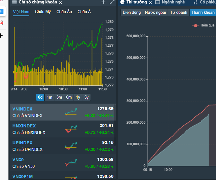Sáng nay Index tăng 6 điểm mà thanh khoản TT kém hôm qua, chủ yếu GAS và vài mã Bank kéo chỉ số. Tiền vào ít.