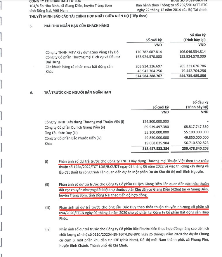 - Như vậy như dự đoán trước đó là chính xác; trả trước cho ông Lầu duy đức là M&A dự án LDG river (2,8ha đất ở thủ đức)
