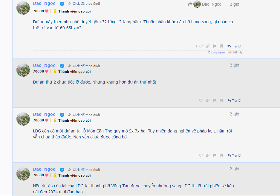 @kytd dự án mà daongoc nói đến ko phải ko có cơ sở vì tổng các dự án đã biết của ldg bao gồm cả vạn hương mới dc gần 1200ha nhưng trên web cập nhật 1440ha. Vậy 240ha nữa đi đâu ? E có gửi mai chất vấn lúc dh cd nhưng ko dc trả lời vde này.
