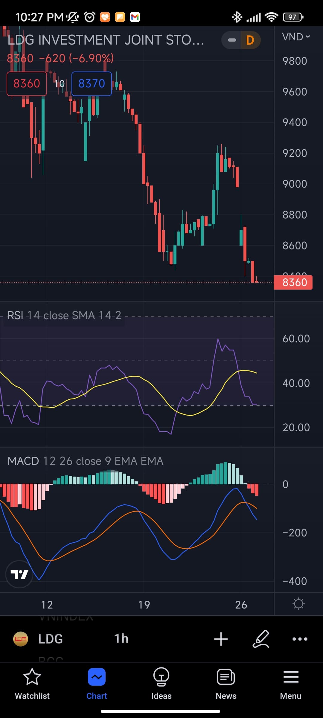 Nếu nhìn chart thì buồn luôn. Bây h bấu víu để giữ giá là sự yêu mến và trung thành của LDGer. Vậy nếu bây h mà xanh là mua hay cơ hội bán. Có lẽ lúc này ko phải lúc tham lam. Mặc dù về 8.x cũng lỗ kha khá nhưng còn hơn khi về 5.x . Tình hình chung xấu và đặc biệt ngành cũng đang xu thế dow. Hẹn các bác 1 tháng nữa. Chỉ bắt đầu tham gia cùng LDG khi 6.x