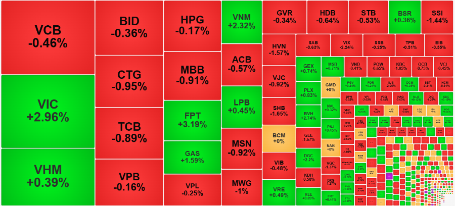 3. Số lượng cổ phiếu đỏ đang áp đảo =>bên bán có phần nhỉnh hơn